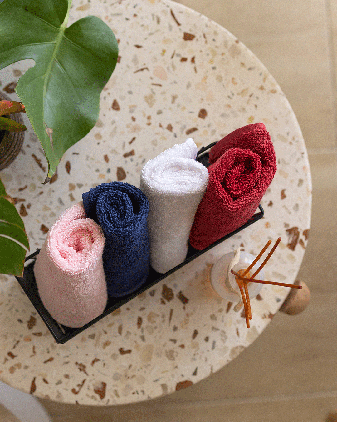 طقم فوط اليد المكون من ٤ قطع، مصممة خصيصًا لتكون مناسبة للبشرة الحساسة. الفوط عملية وسهلة الاستخدام، بتمتص الماء بسرعة، وتتميز بالنعومة والمتانة، بحيث تضمنلك راحة فائقة بعد كل غسل لليدين. وتدوم لفترة طويلة دون فقدان نعومتها أو شكلها.