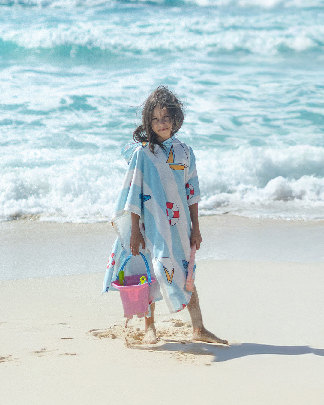بونشو ميني مارين تويست للأطفال بألوانه المبهجة ورسوماته المستوحاة من الحياة المائية, معمول من خامة مايكروفايبر الناعمة على الجلد وسريعة الجفاف، خفيف يتلبس بسهولة ومريّح في الحركة. اختيار مثالي لأيام البحر والمغامرات تحت الشمس
