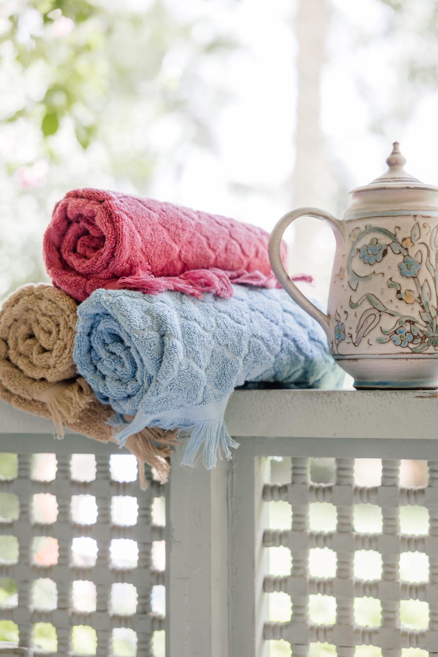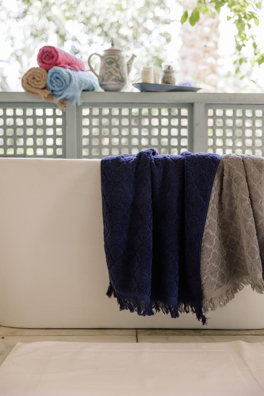 دي الفوطة اللي هتستخدميها مع ضيوفك وفي تجمعاتك، علشان تضيفي لمسة فخامة للحمام زي ما يستاهل. ده بفضل قدرتها العالية على الامتصاص، وخامتها القطن 100%، وكمان تصميم الجاكار اللي بيخليها أساسية في المناسبات دي