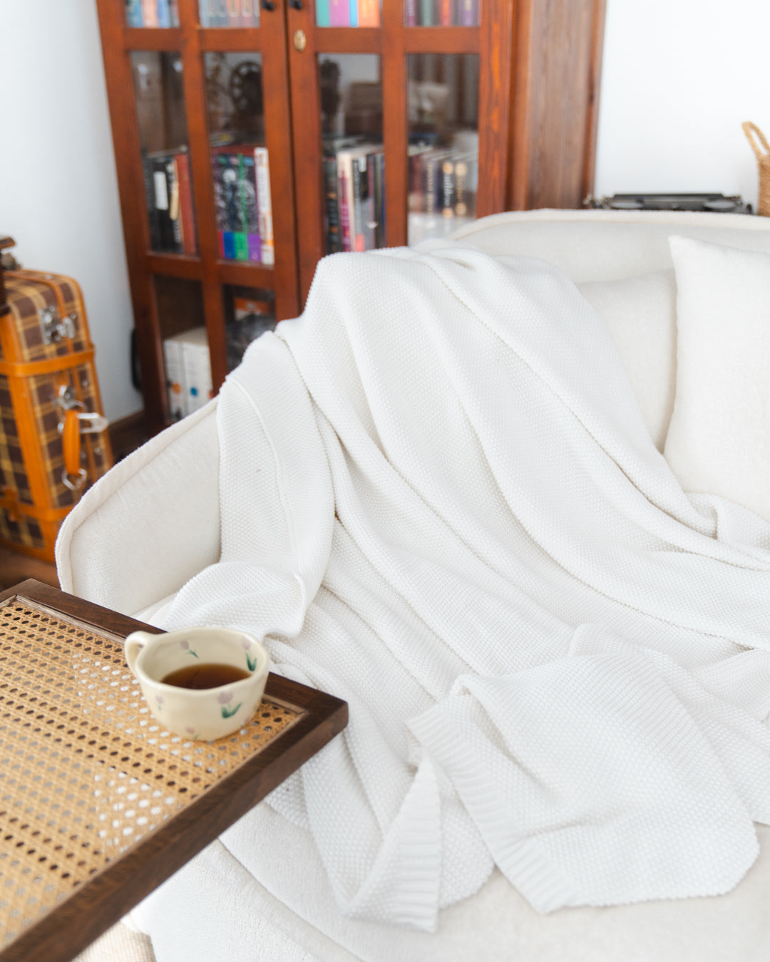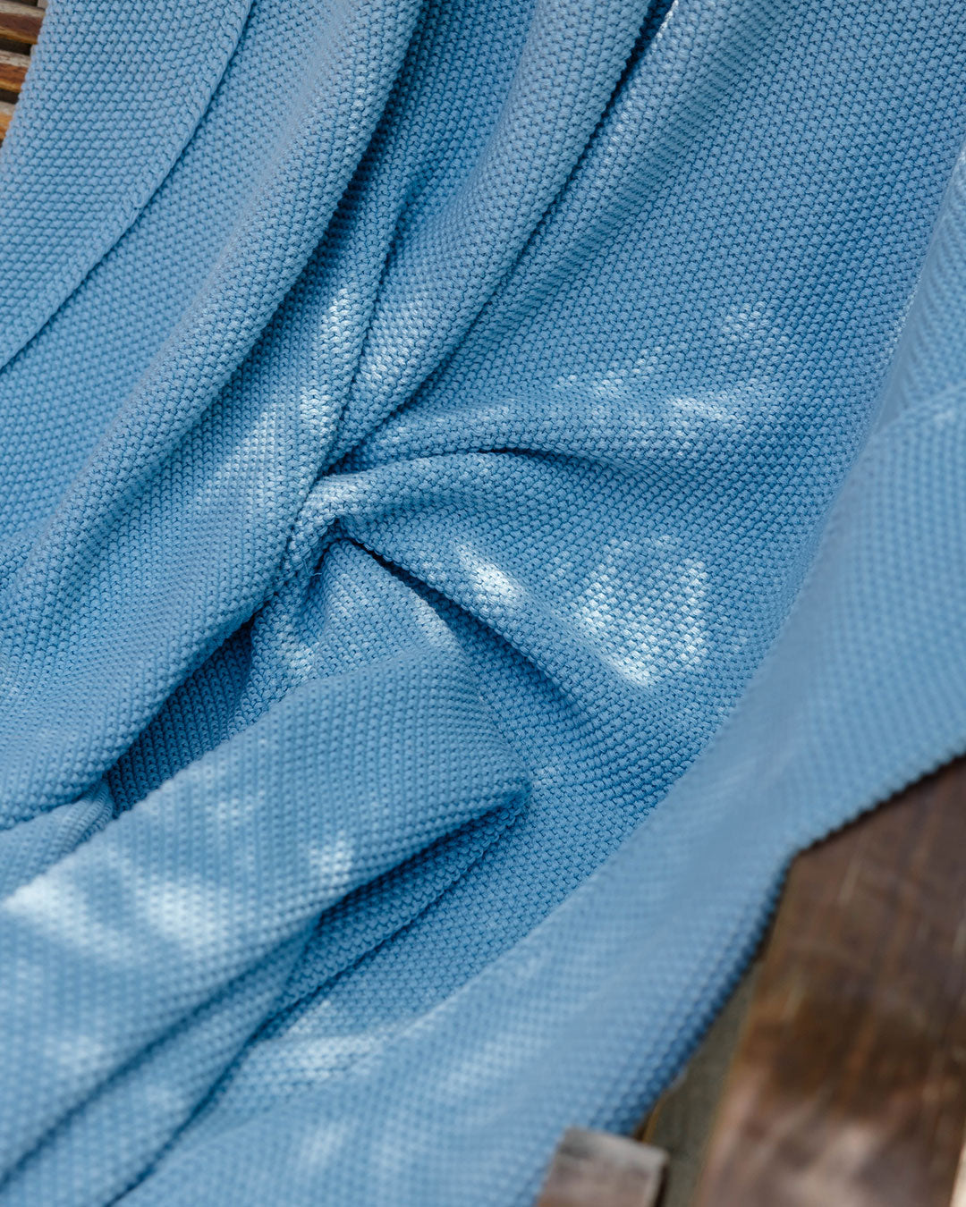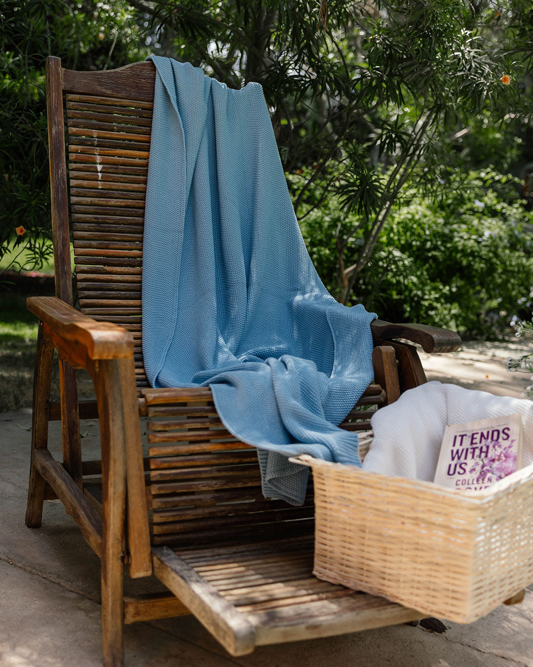 Wrap yourself in comfort with our cozy knitted throw blanket. Crafted from high-quality cotton yarn, this blanket features a textured weave that offers warmth without overheating. The natural fibers ensure breathability and softness, making it perfect for year-round use—whether you're cuddling on the couch or layering on your bed.