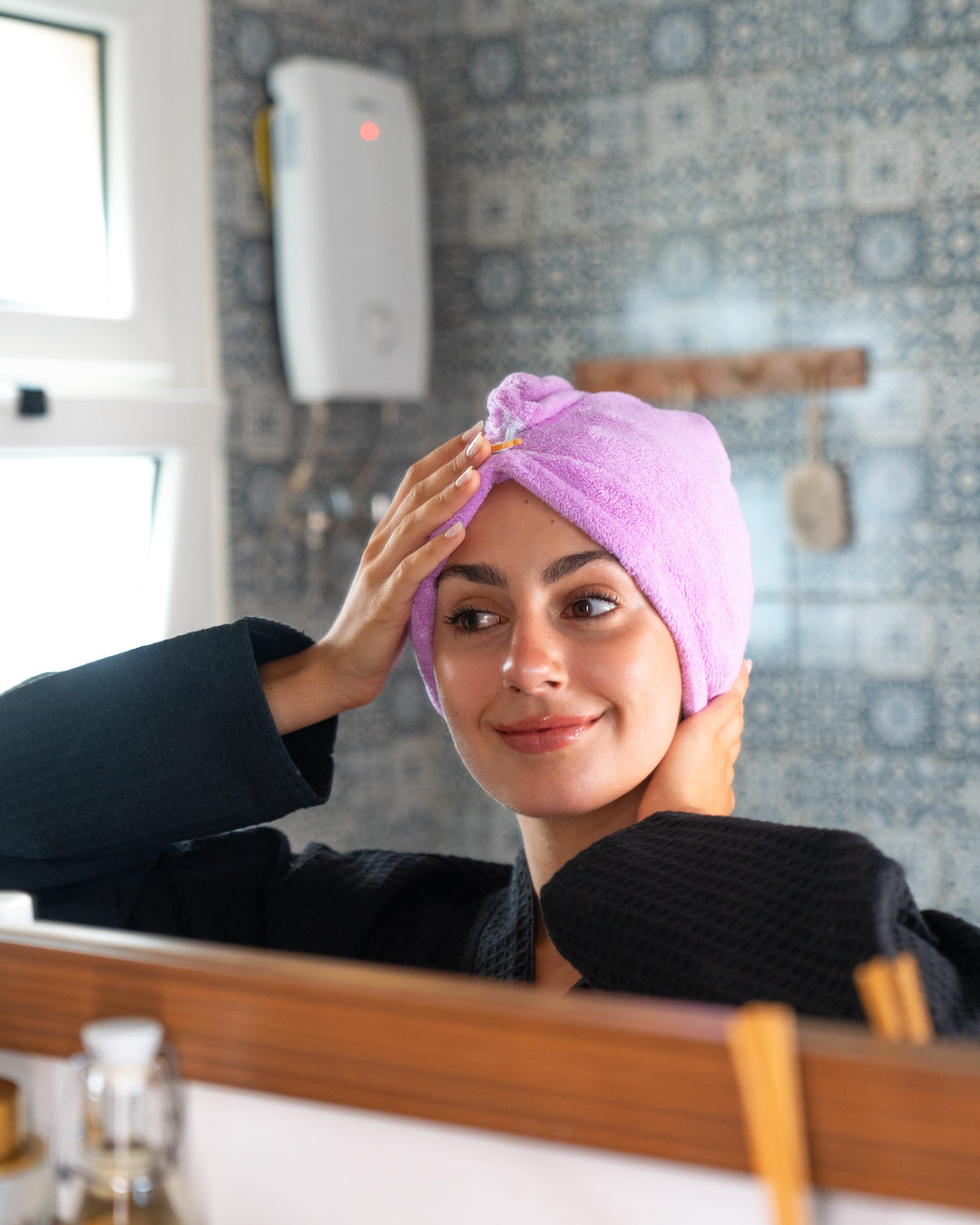 Microfiber Hair Towel designed to quickly absorb moisture, reduce heat damage, and cut drying time. Soft, lightweight, and easy to wrap, it stays securely in place for an effortless haircare routine.
