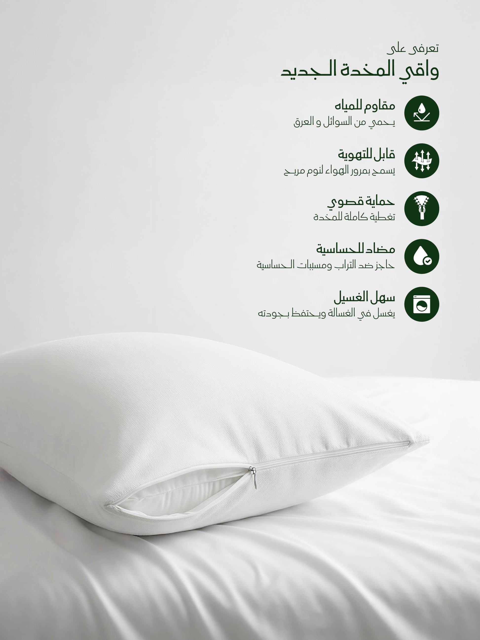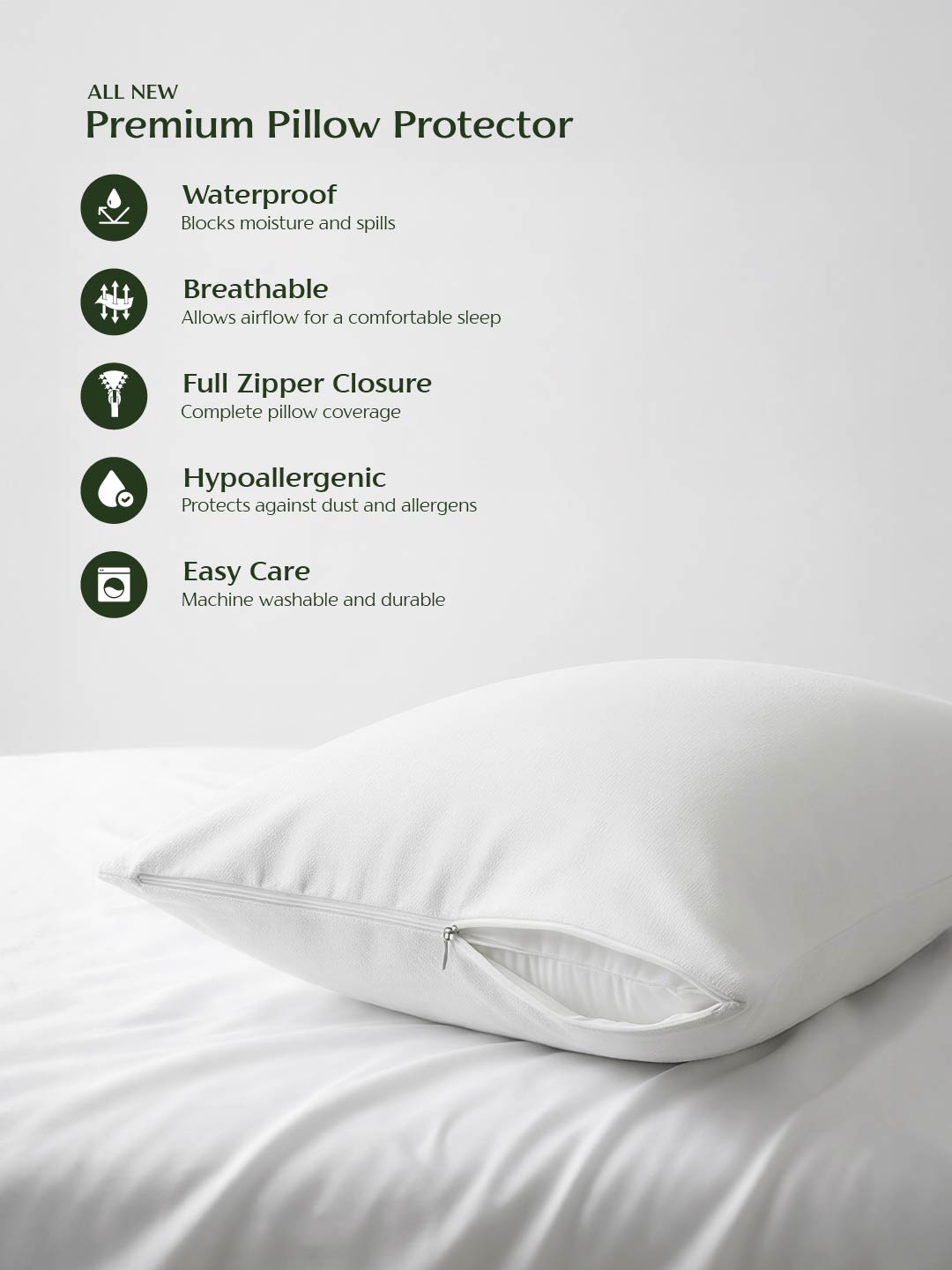 Breathable, waterproof pillow protector that keeps pillows clean, fresh, and protected from spills, stains, dust mites, and allergens.